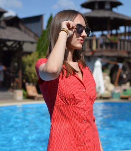 | Рисунок на ткани | Белый горошек на красном |